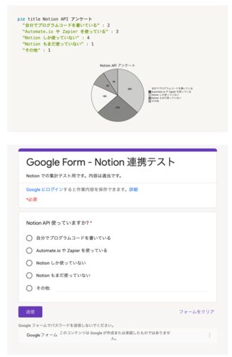 はじめに Notion が Mermaid.js の描画に対応しました。グラフが Codeblock で書けるようになりました。要望があったので、Google Form をリアルタイムで集計する Notion ページを作ってみることにしました。いつものように作りながら記事を仕上げていきます…