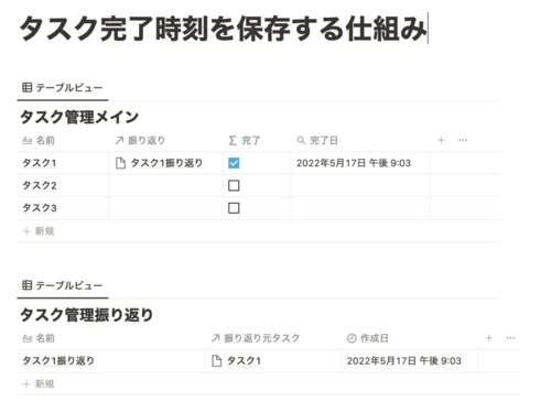 はじめに Notion Tokyo の「なんでも相談」にて以下の質問がありました。 タスク管理でタスクを完了したタイミングを自動で管理したいのですが、なるべくNotionのみで完結させる方法はないでしょうか。 フォーミュラでnowを使うと常に現在時刻が更新されてし…