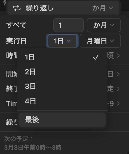 hkobの雑記録第38回は、月の最後の○曜日に繰り返しが設定できるようになったことや、さまざまな繰り返しパターンについて検証する内容です。 (要約 by Notion AI)