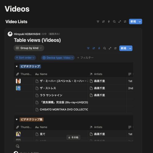 hkobの雑記録第274回は、Videosのデータベース設定を試みたが、一部手動処理が残ったものの、AlbumsとSinglesも含めて作成が完了した。(要約 by Notion AI)