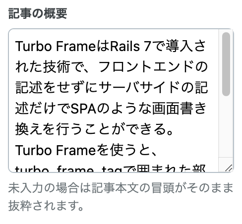 これができた時点で私的にはユカスタマス完走できると思いました。あとは「記事の概要」の部分だけです。はてなブログでは、こんな感じでアブストラクトを記載できます。