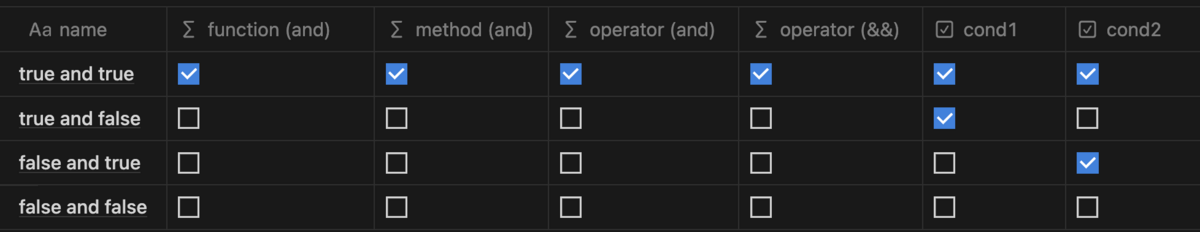 Notion Formula の第11回目では複数の比較結果を組み合わせて新しい結果を出力する論理演算関数を確認します。and, or, not という関数もありますが、Notion Formula 2.0 からは &&, ||, ! の演算子記号を使うことが推奨されています。すでに逆引き Formula のページに関数説明があるので、このページを見ながら解説していきます。