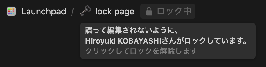 今日 @mizukih__ さんに教えていただいて気づいたのですが、Notionでロック中のページってヘッダーから簡単にアンロック&再ロックできたんですね…!ここクリックできるの知りませんでした。 pic.twitter.com/FexDJT8A0E
