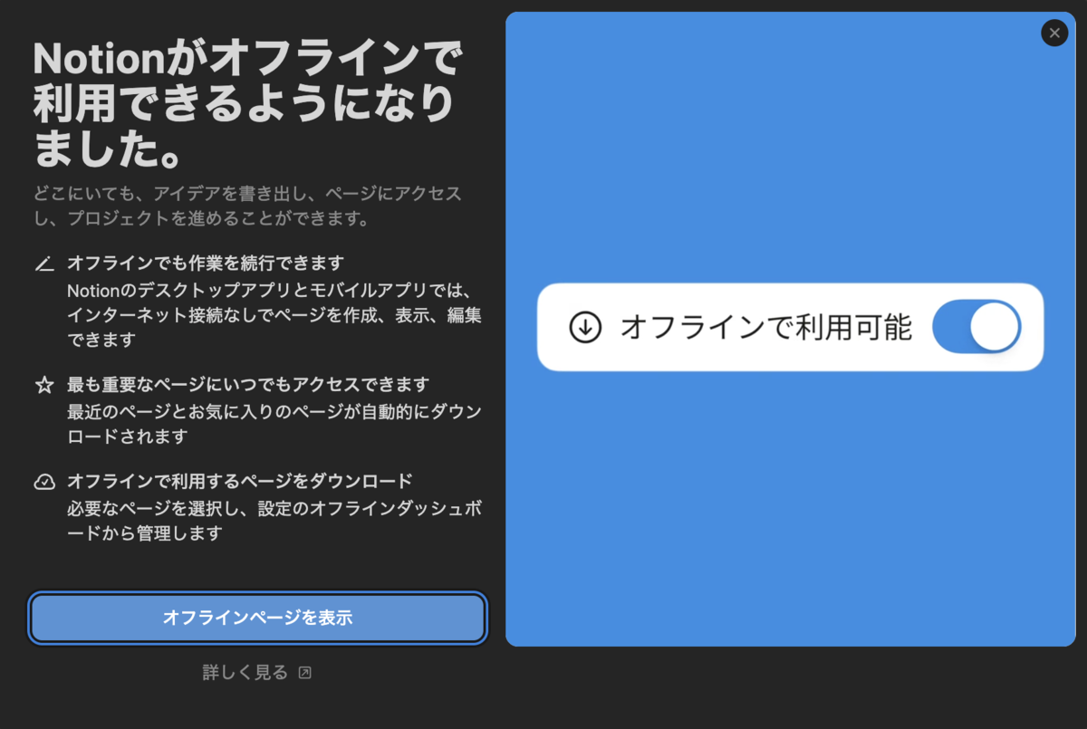 数ヶ月にわたる移行作業(そして前回のMake with Notionカンファレンスでの予告)の後、ついにNotionオフラインモードが登場!