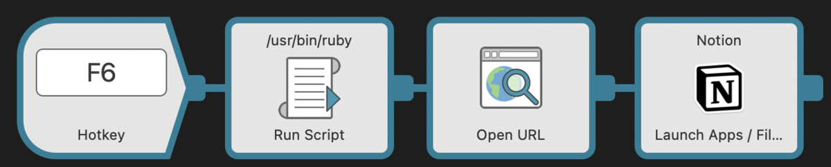 スクリプトはこんな感じ。この上にある F7 は現在クリップボードにあるテキストを自動的に今開いている Notion に貼ってくれるので、合わせ技もできますね。 pic.twitter.com/FKuyM69xZF