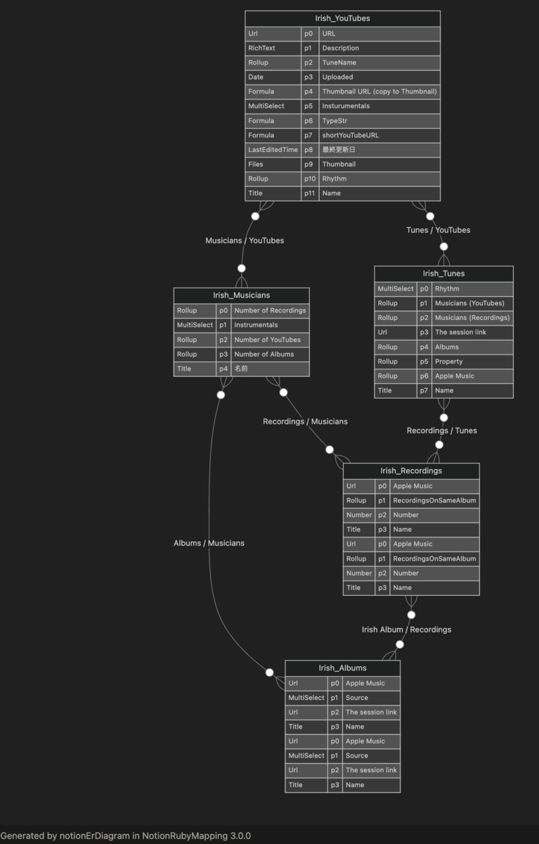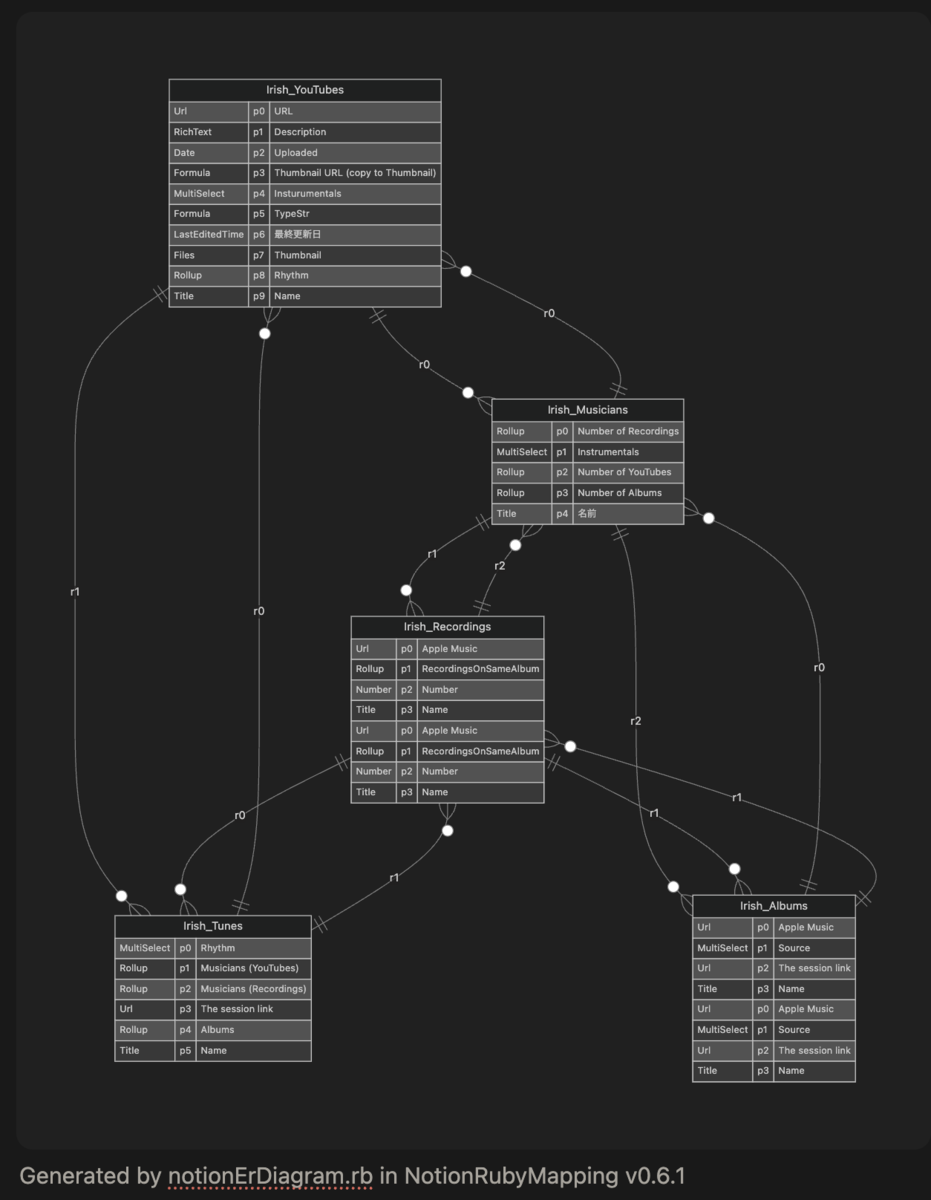 notionErDiagram は NotionRubyMapping に同梱しているサンプルプログラムです。Notion のデータベースと CodeBlock を渡すと ER図を描いてくれるプログラムです。解説はこちらにあります。