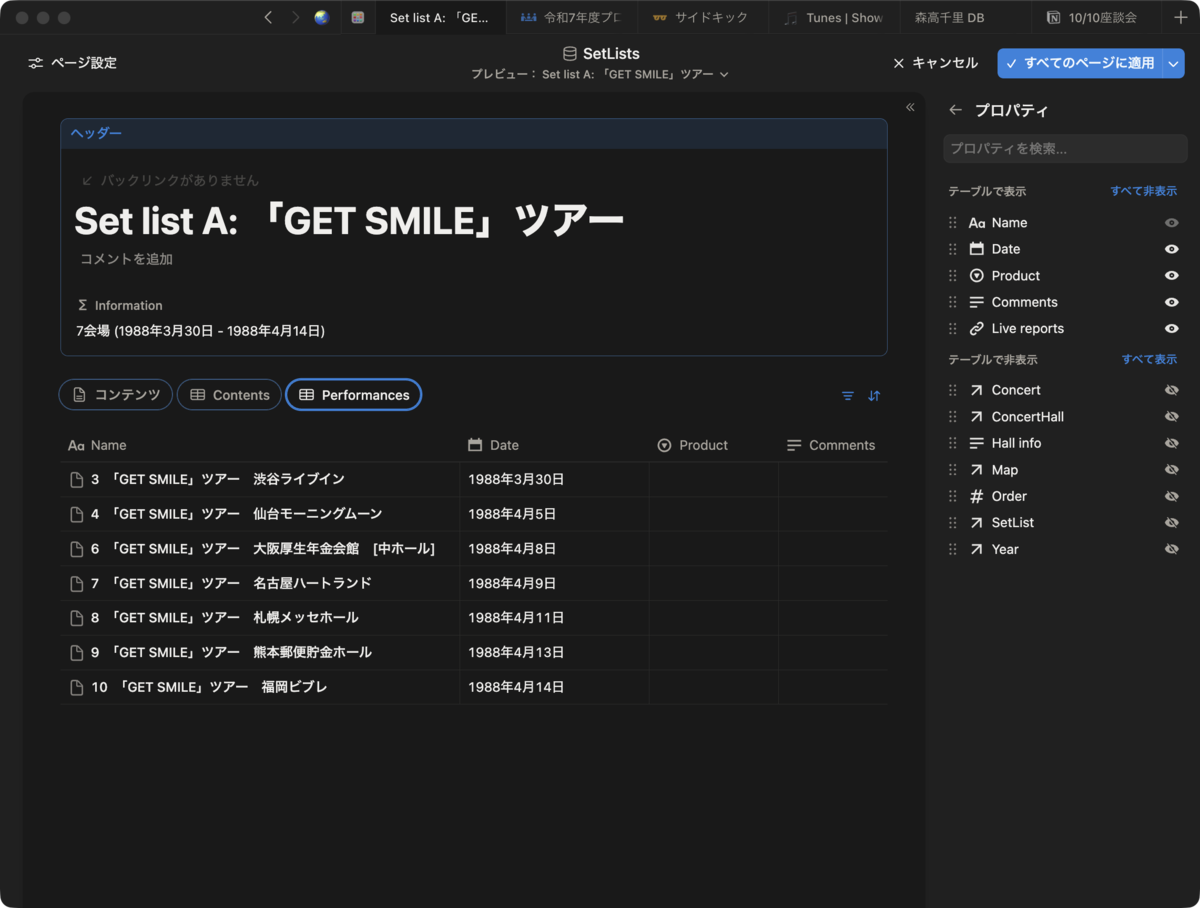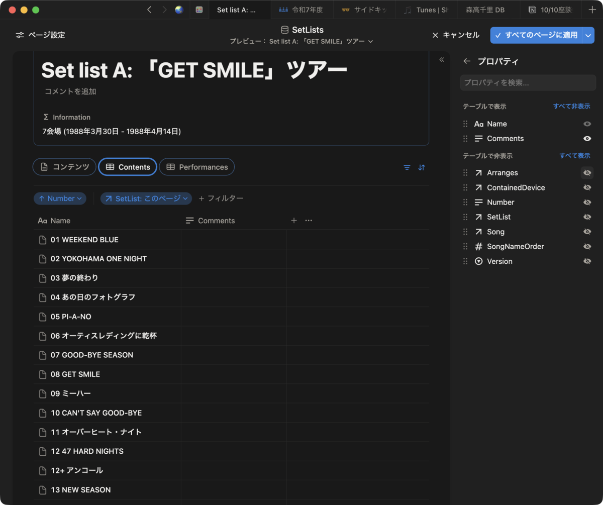 今回は、SetList のレイアウトを設定してみました。次回は Performances のリストを作成してみようと思います。